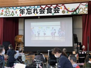 年忘れということで一年間の行事や日常を職員が動画にしステージで放映